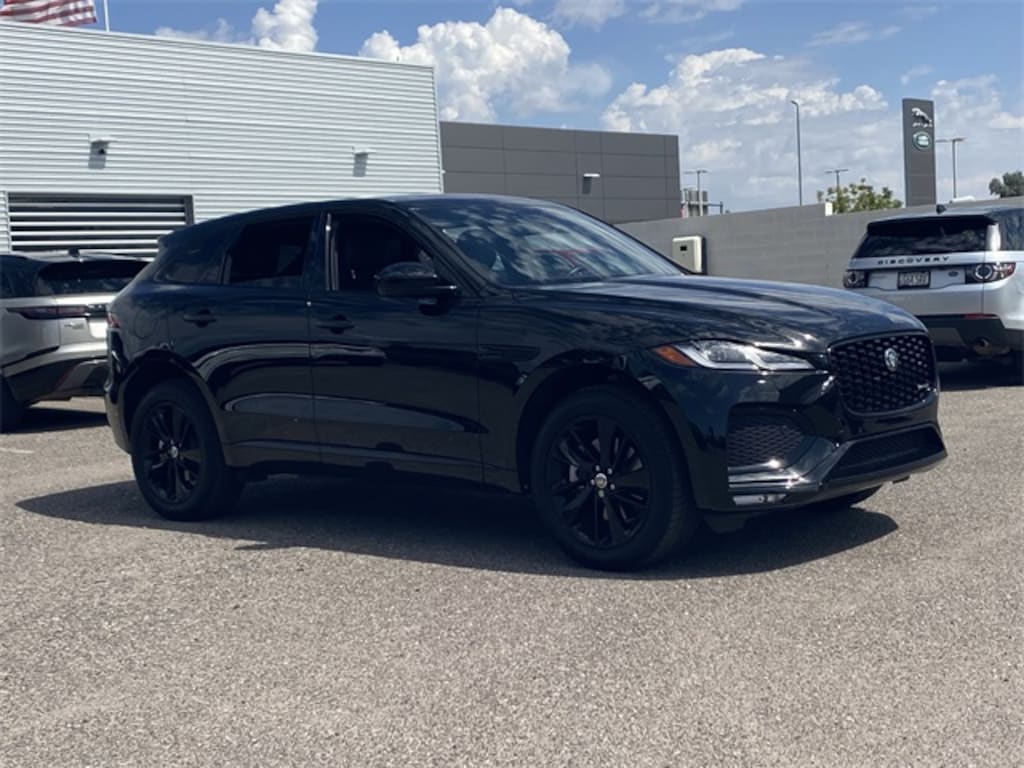 Santorini Black 2025 Jaguar F-PACE P250 AWD 8-Speed Automatic 2.0L I4 Turbocharged Jaguar Approved Certified Pre-Owned Certified, 13 Speakers, 3.73 Axle Ratio, 4-Wheel Disc Brakes, ABS brakes, Air Conditioning, Alloy wheels, AM/FM radio: SiriusXM, Apple CarPlay/Android Auto, Auto High-beam Headlights, Auto tilt-away steering wheel, Auto-dimming door mirrors, Auto-dimming Rear-View mirror, Automatic temperature control, Brake assist, Bumpers: body-color, Compass, Delay-off headlights, Driver door bin, Driver vanity mirror, Dual front impact airbags, Dual front side impact airbags, Electronic Stability Control, Emergency communication system: Remote SOS Emergency Call, Exterior Parking Camera Rear, Four wheel independent suspension, Front anti-roll bar, Front Bucket Seats, Front Center Armrest, Front dual zone A/C, Front reading lights, Fully automatic headlights, Garage door transmitter: HomeLink, Heated door mirrors, Heated front seats, Heated Front Sport Seats, Heated steering wheel, Illuminated entry, Leather Shift Knob, Leather steering wheel, Low tire pressure warning, Memory seat, Navigation system: Pivi Pro (Connected Navigation), Occupant sensing airbag, Outside temperature display, Overhead airbag, Overhead console, Panic alarm, Passenger door bin, Passenger vanity mirror, Perforated DuoLeather Seat Trim, Power door mirrors, Power driver seat, Power Liftgate, Power moonroof, Power passenger seat, Power steering, Power windows, Radio data system, Radio: Meridian 400W Sound System, Rain sensing wipers, Rear anti-roll bar, Rear fog lights, Rear reading lights, Rear seat center armrest, Rear window defroster, Rear window wiper, Remote keyless entry, Security system, Speed control, Speed-sensing steering, Split folding rear seat, Spoiler, Sport steering wheel, Steering wheel memory, Steering wheel mounted audio controls, Tachometer, Telescoping steering wheel, Tilt steering wheel, Traction control, Trip computer, Turn signal indicator mirrors, Variably intermittent wipers, Wheels: 19" Diamond Turned (Style 5103), Courtesy Vehicle.
