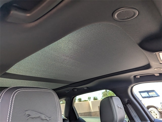 Grey 2026 Jaguar F-PACE P250 R-Dynamic S AWD 8-Speed Automatic 2.0L I4 Turbocharged 13 Speakers, 4-Wheel Disc Brakes, ABS brakes, Air Conditioning, Alloy wheels, AM/FM radio: SiriusXM, Apple CarPlay/Android Auto, Auto High-beam Headlights, Auto tilt-away steering wheel, Auto-dimming door mirrors, Auto-dimming Rear-View mirror, Automatic temperature control, Brake assist, Bumpers: body-color, Compass, Delay-off headlights, Driver door bin, Driver vanity mirror, Dual front impact airbags, Dual front side impact airbags, Electronic Stability Control, Emergency communication system: Remote SOS Emergency Call, Exterior Parking Camera Rear, Four wheel independent suspension, Front anti-roll bar, Front Bucket Seats, Front Center Armrest, Front dual zone A/C, Front fog lights, Front reading lights, Fully automatic headlights, Garage door transmitter: HomeLink, Heads-Up Display, Heated door mirrors, Heated front seats, Heated Front Sport Seats, Heated steering wheel, Illuminated entry, Leather Shift Knob, Leather steering wheel, Low tire pressure warning, Memory seat, Navigation system: Pivi Pro (Connected Navigation), Occupant sensing airbag, Outside temperature display, Overhead airbag, Overhead console, Panic alarm, Passenger door bin, Passenger vanity mirror, Power door mirrors, Power driver seat, Power Liftgate, Power moonroof, Power passenger seat, Power steering, Power windows, Radio data system, Radio: Meridian 400W Sound System, Rain sensing wipers, Rear anti-roll bar, Rear fog lights, Rear reading lights, Rear seat center armrest, Rear window defroster, Rear window wiper, Remote keyless entry, Security system, Speed control, Speed-sensing steering, Split folding rear seat, Spoiler, Sport steering wheel, Steering wheel memory, Steering wheel mounted audio controls, Tachometer, Telescoping steering wheel, Tilt steering wheel, Traction control, Trip computer, Turn signal indicator mirrors, Variably intermittent wipers.