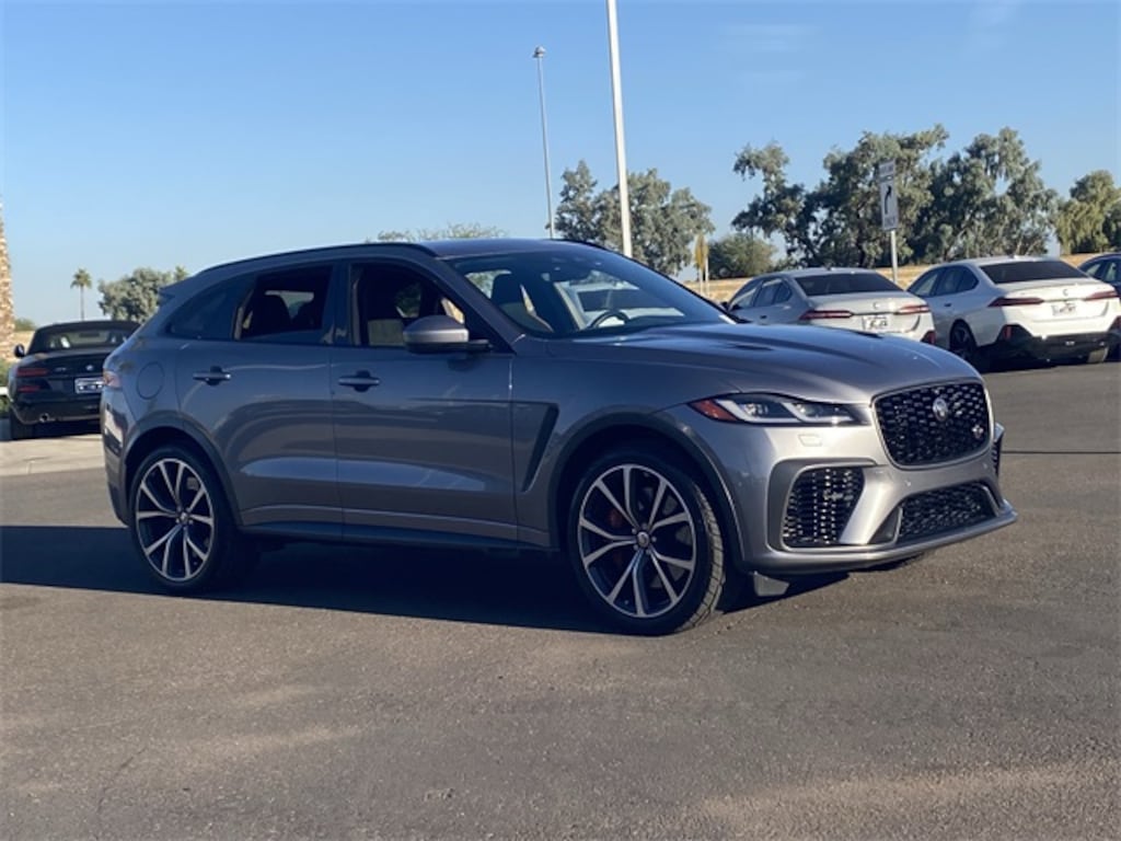 Unleash the power of the 2021 Jaguar F-PACE SVR, a true performance SUV that will captivate your senses and elevate your driving experience. This stunning Gray beauty boasts a 5.0L V8 Supercharged engine, delivering an exhilarating 15 city / 22 highway MPG, ensuring you'll never be left wanting for power.