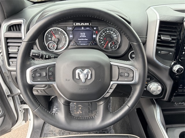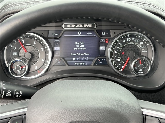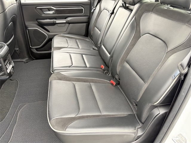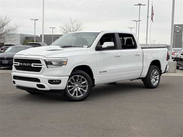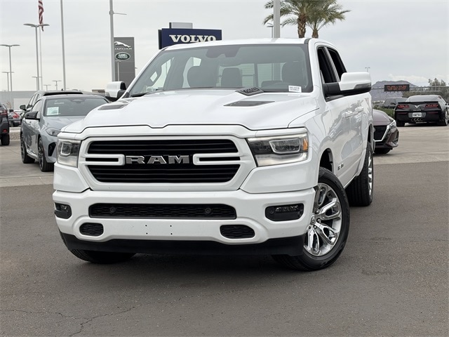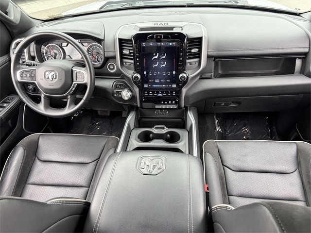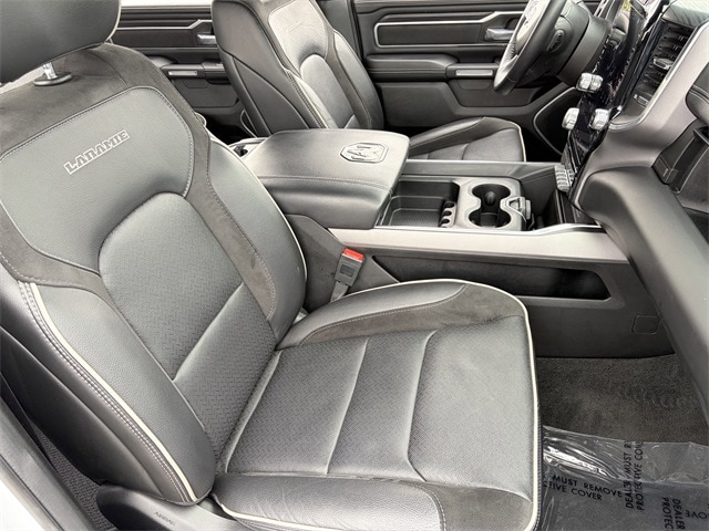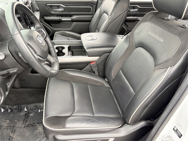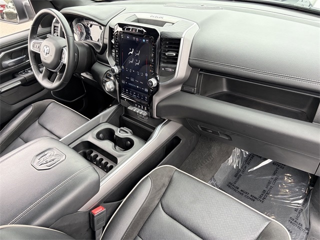 One Owner, 10 Speakers, 12" Touchscreen Display, 2nd Row In Floor Storage Bins, 4G LTE Wi-Fi Hot Spot, Air Conditioning, AM/FM radio: SiriusXM with 360L, Anti-Spin Differential Rear Axle, Apple CarPlay, Auto High Beam Headlamp Control, Auto-dimming door mirrors, Auto-Dimming Exterior Driver Mirror, Auto-dimming Rear-View mirror, Automatic temperature control, Black Interior Accents, Blind Spot & Cross Path Detection, Body Color Exterior Mirrors, Body Color Front Bumper, Body Color Premium Power Mirrors, Body Color Rear Bumper w/Step Pads, Brake assist, Connected Travel & Traffic Services, Connectivity - US/Canada, Disassociated Touchscreen Display, Driver Seat Memory, Electric Shift-On-Demand Transfer Case, Electronic Stability Control, Exterior Mirrors w/Memory, Foam Bottle Insert (Door Trim Panel), For Details, Visit DriveUconnect.com, For More Info, Call 800-643-2112, Front Door Accent Lighting, Front dual zone A/C, Front LED Fog Lamps, Fully automatic headlights, Garage door transmitter, Global Telematics Box Module (TBM), Google Android Auto, GPS Antenna Input, GPS Navigation, Grille Surround 3 Body Color Tex 2 Black, HD Radio, Heated door mirrors, Heated Front Seats, Heated Steering Wheel, Integrated Center Stack Radio, Integrated Voice Command w/Bluetooth, Laramie Level 1 Equipment Group, Leather steering wheel, Leather Trim 40/20/40 Bench Seat, LED Reflector Headlamps, Memory seat, Navigation System, ParkSense Front/Rear Park Assist w/Stop, ParkView Rear Back-Up Camera, Pedal memory, Power 2-Way Driver Lumbar Adjust, Power 2-Way Passenger Lumbar Adjust, Power door mirrors, Power driver seat, Power steering, Power windows, Power-Folding Mirrors, Quick Order Package 28H Laramie (DISC), Radio: Uconnect 5 Nav w/12.0" Display, Radio: Uconnect 5 Nav w/8.4" Display, Rain Sensitive Windshield Wipers, RAM Grille Badge - Chrome, Rear 60/40 Folding Seat, Rear Door Accent Lighting, Rear Power Sliding Window, Rear Underseat Compartment Storage, Rear Window Defroster, Remote keyless entry, Remote Tailgate Release, SiriusXM Radio Service, SiriusXM w/360L, Speed control, Sport Appearance Package, Sport Decal, Sport Performance Hood, Steering wheel mounted audio controls, Tilt steering wheel, Traction control, Turn signal indicator mirrors, USB Host Flip, Ventilated Front Seats, Wheels: 20" x 9" Premium Painted w/Inserts, #1 Seat Foam Cushion, 3 Rear Seat Head Restraints, 3.21 Rear Axle Ratio, 4 Way Front Headrests, 4-Wheel Disc Brakes, 48V Belt Starter Generator, ABS brakes, Adjustable pedals, Alloy wheels, Apple CarPlay/Android Auto, Audio memory, Bumpers: chrome, Chrome Exterior Mirrors, Compass, Convex Wide-Angle Exterior Mirror Insert, Delay-off headlights, Driver door bin, Driver vanity mirror, Dual front impact airbags, Dual front side impact airbags, Exterior Mirrors Courtesy Lamps, Exterior Mirrors w/Heating Element, Exterior Mirrors w/Supplemental Signals, Front anti-roll bar, Front Center Armrest w/Storage, Front fog lights, Front reading lights, Front Seat Back Map Pockets, Front wheel independent suspension, Heated front seats, Heated steering wheel, Illuminated entry, Low tire pressure warning, Manufacturer's Statement of Origin, Occupant sensing airbag, Outside temperature display, Overhead airbag, Overhead console, Panic alarm, ParkSense Front/Rear Park Assist w/Stop (DISC), Passenger door bin, Passenger vanity mirror, Power 8-Way Driver & Passenger Seats, Power passenger seat, Radio data system, Rear anti-roll bar, Rear seat center armrest, Rear step bumper, Rear Wheelhouse Liners, Security system, Split folding rear seat, Tachometer, Telescoping steering wheel, Trip computer, Variably intermittent wipers, Ventilated front seats, Voltmeter, Wheels: 18" x 8" Aluminum Base Painted, 10 Speakers, 12" Touchscreen Display, 2nd Row In Floor Storage Bins, 4G LTE Wi-Fi Hot Spot, Air Conditioning, AM/FM rad